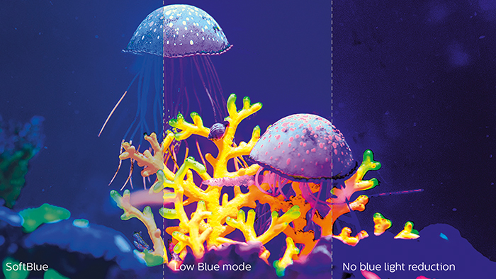Светодиодная технология SoftBlue использует интеллектуальную технологию для уменьшения длины волны вредного синего света, не влияя на цвет изображения на дисплее. Светодиодной технологии SoftBlue присвоен сертификат международной испытательной организации TUV Rheinland, подтверждающий сокращение излучения вредного синего света.